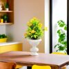 Money Leaf Flower Plants with Yellow Vase for Office Desk,Fake Plant with Plastic Pots for Home,Shower Room Decoration (RV-AP1)